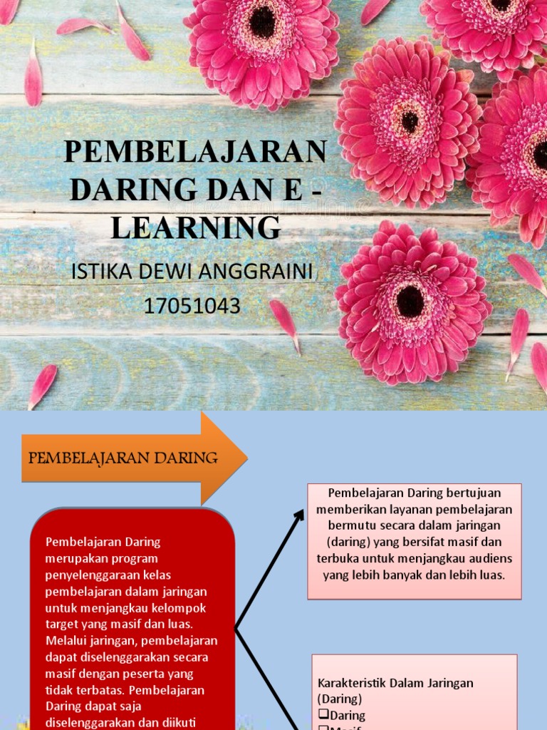 Secara sederhana pembelajaran daring merupakan kegiatan pembelajaran yang memanfaatkan jaringan (internet, lan, wan) sebagai metode penyampaian, interaksi, dan fasilitasi serta didukung oleh berbagai bentuk layanan belajar lainnya. Jika kita membagi berdasarkan topik yang diajarkan, kita juga bisa membagi atas beberapa jenis pembelajaran daring: Dengan mempersiapkan rpp secara matang, maka dapat mempengaruhi keberhasilan materi pembelajaran agar lebih terarah dan terkontrol. Sedangkan salah satu teori belajar yaitu teori humanistik adalah memanusiakan. Wabah covid19 memengaruhi dan mengubah segala aspek dalam kehidupan kita.